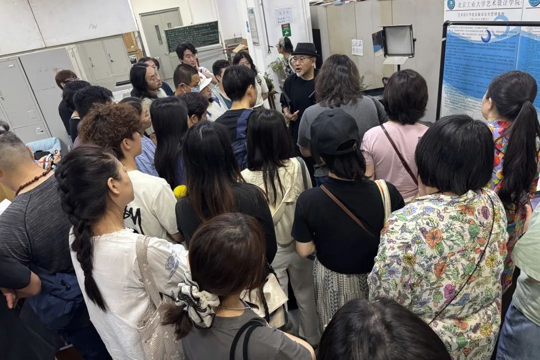 在调研考察学习环节,学员集体前往北京工业大学艺术设计学院,先后参观了学院工艺美术系的金属工艺、漆艺实验室。钟声教授介绍了学院发展历史和工艺美术系的建设情况,通过展示介绍国际、国内漆艺术作品为学员开拓视野、创新思维,他强调要具有“颠覆”思维,在继承传统的基础上,大胆创新,利用新媒体、新科技助力素质提升。