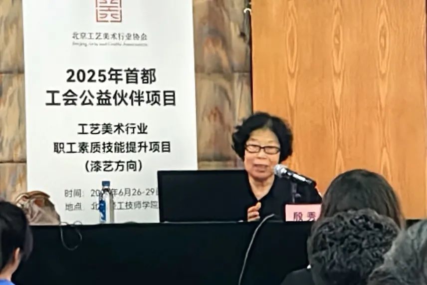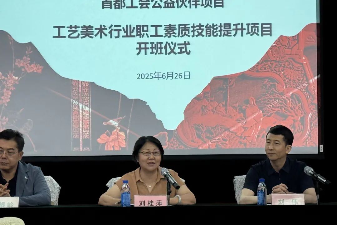 6月26日,由北京市总工会资助的首都公益伙伴项目“工艺美术行业职工素质技能提升项目”开班仪式在北京轻工技师学院多功能厅举行。北京市总工会职工服务中心副主任刘桂萍,北京工艺美术行业协会常务副会长、北京工美集团副总经理刘伟,北京工艺美术行业协会副会长、轻工技师学院党委书记、院长张根岭,院长助理杨心宇,中国工艺美术大师、国家级非遗雕漆技艺代表性传承人殷秀云,中国工艺美术大师、国家级非遗金漆髹饰技艺代表性传承人万紫等领导、授课大师,以及40名学员出席了开班仪式。北京工艺美术行业协会副会长、秘书长宋印伟主持仪式。