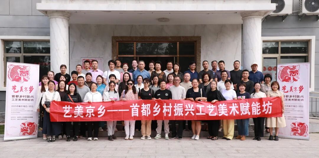 由北京市人力资源和社会保障局资助,北京工艺美术学会申办的2025年北京市高级研修班“艺美京乡——首都乡村振兴工艺美术赋能坊”于2025年8月15日至17日在北京市级新时代文明基地、延庆区科普基地、井庄镇窑湾村乡土文化专家工作站成功举办。来自53家企事业单位的55名学员参加了此次研修。