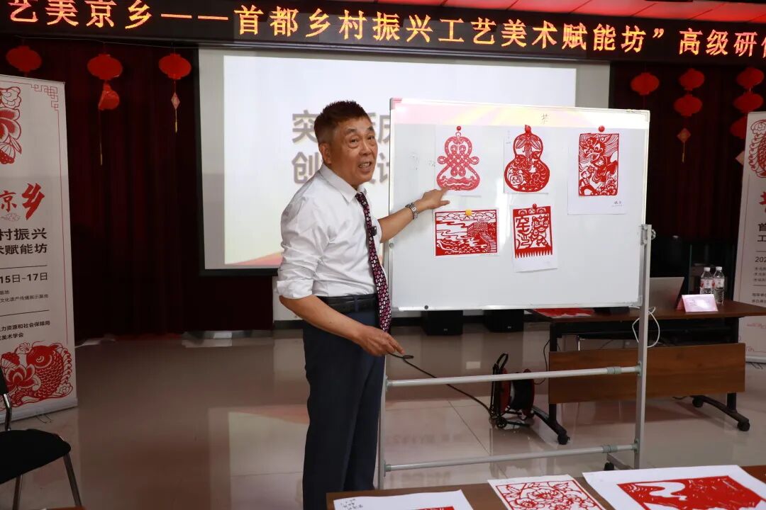 此次研修班以工作坊形式开办专题研修,设立研修主题,以延庆区非物质文化遗产传播展示基地为依托,采用理论教学、采风考察、实践实操、座谈交流、汇报展示等多种形式,通过剪纸技艺实操创作,设计研发具有民族特色、地域特点、可持续开发的非遗作品,应用转化为具有可识别性的视觉符号。赋能坊为乡村振兴一线的管理人、乡村手艺人、本地村民和工艺美术大师搭建赋能学习、沟通交流的平台,旨在探索打造“以文促旅、以旅彰文”的乡村振兴破圈共融的新模式。
