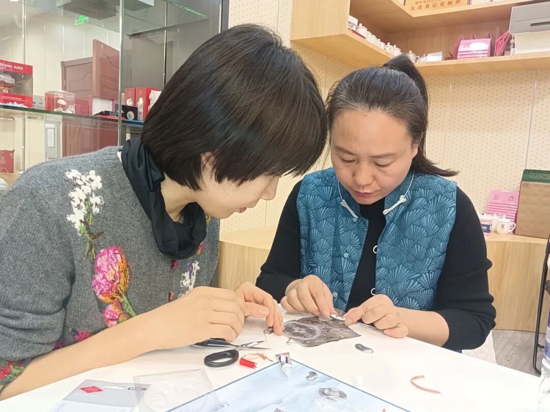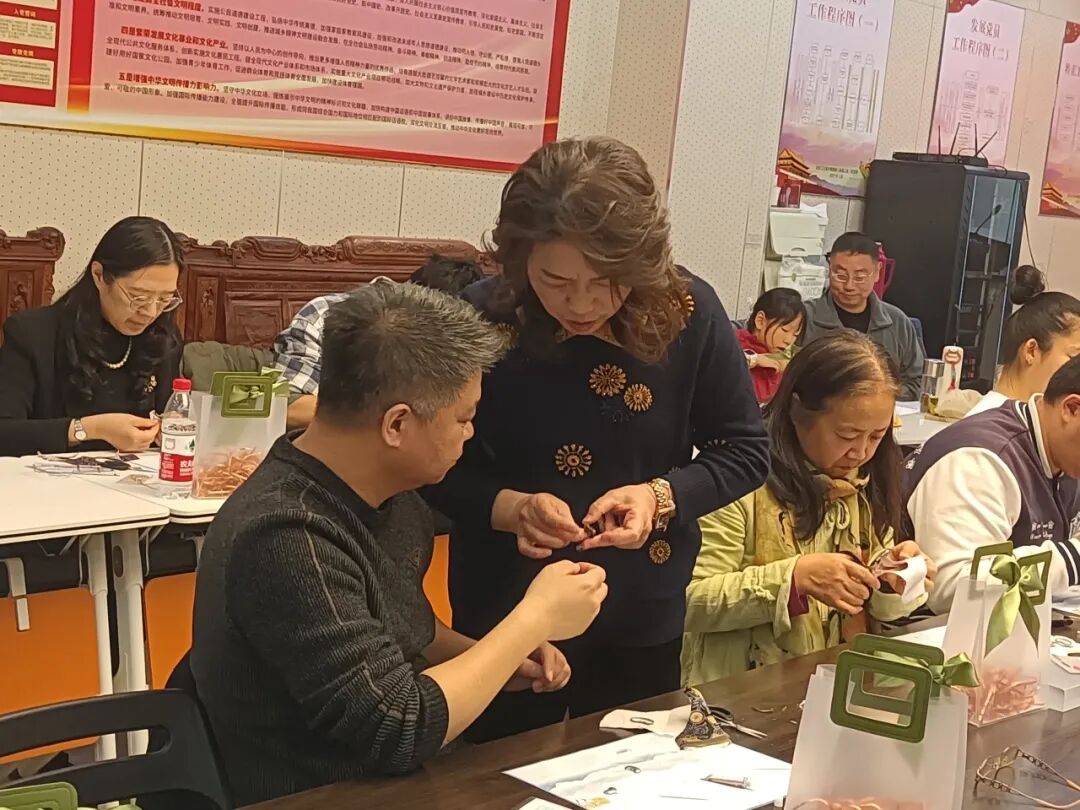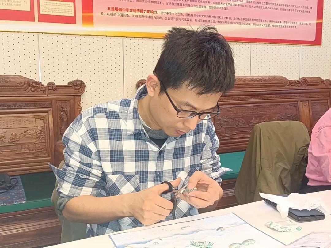 在实操体验环节,科技工作者们在金耀华大师悉心指导下,兴致盎然地投入创作。金大师也在参与的科技工作者们之间,耐心解答疑问、纠正手法,现场氛围热烈而温馨。