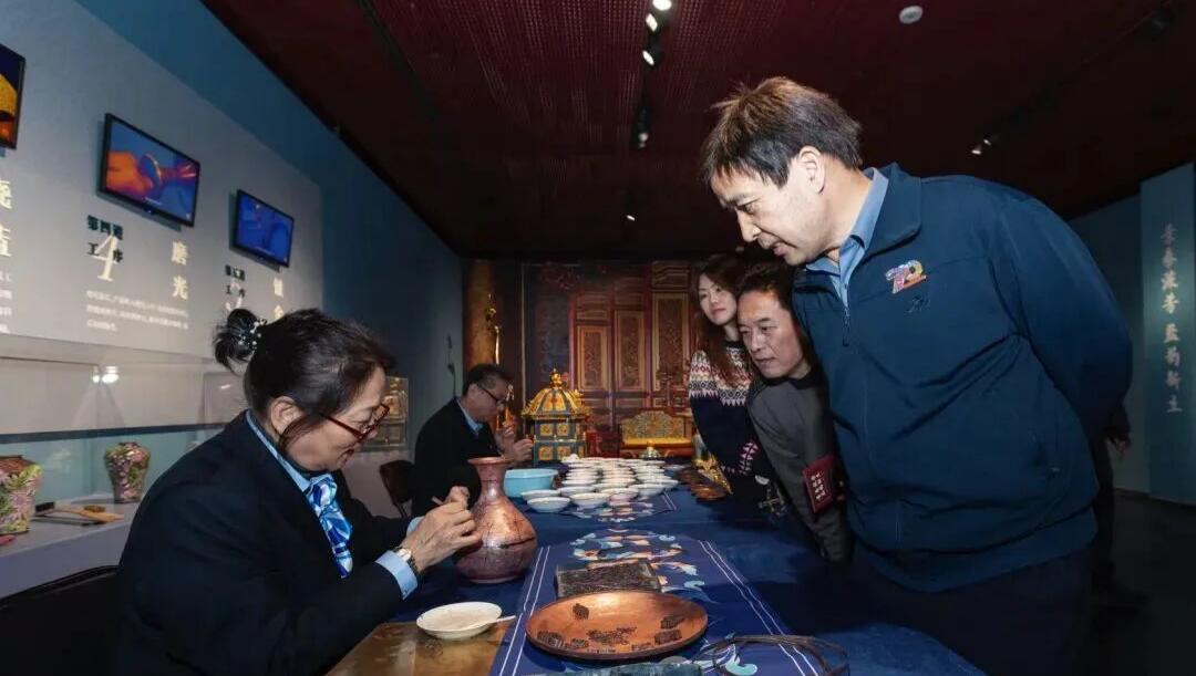 国家级非遗传承人、北京市珐琅厂总工艺师钟连盛为与会嘉宾进行现场讲解导览。